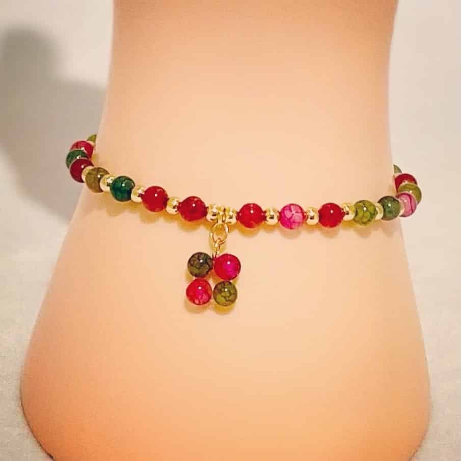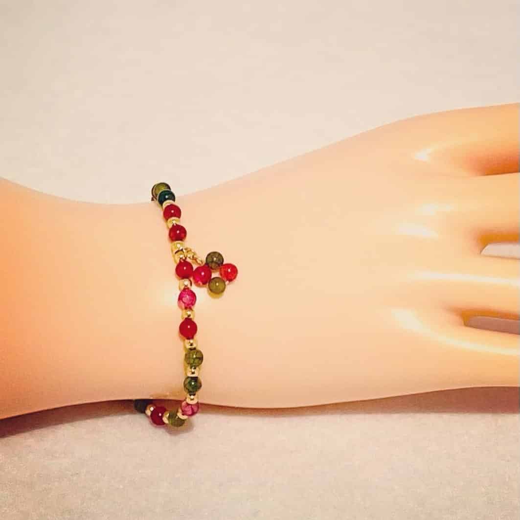 14K Gold Plated Tourmaline Charm Bracelet