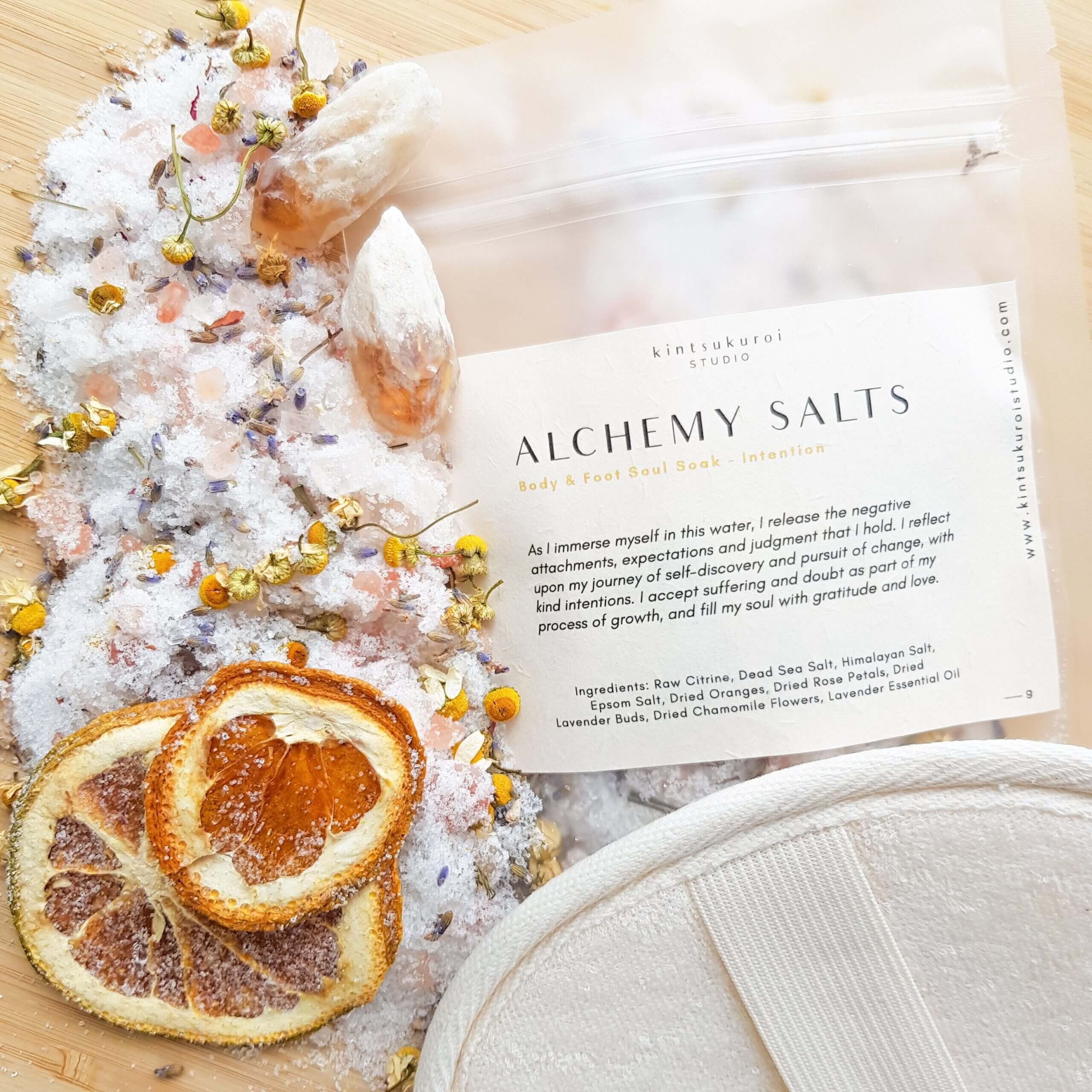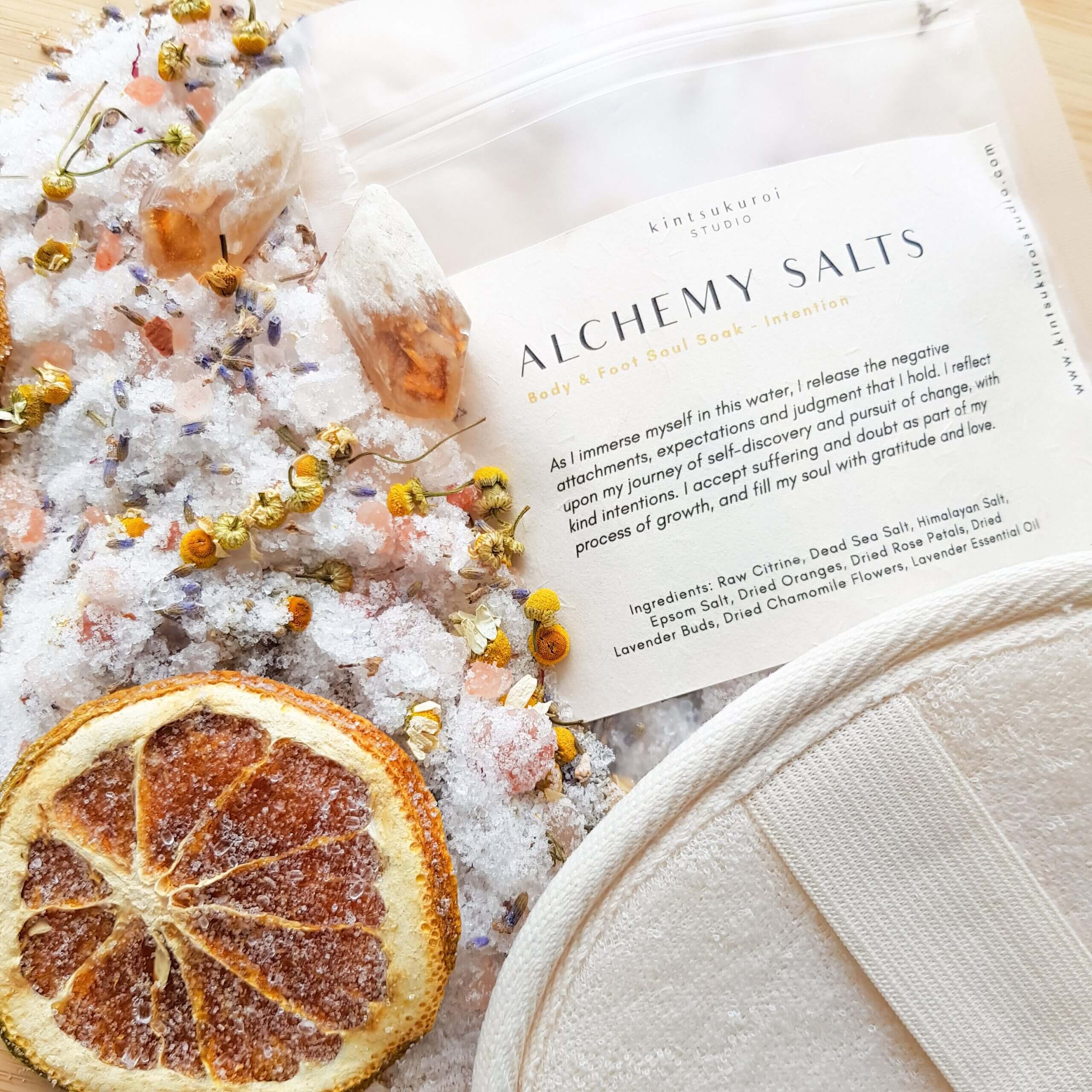 Through a process of transformation and creation, I constantly remind myself of the person whom I want to be. I may not be there yet, but I am on the path that I choose to take. Paired with raw citrine crystals, these salts help the soul manifest its intentions of acceptance, gratitude, and growth.