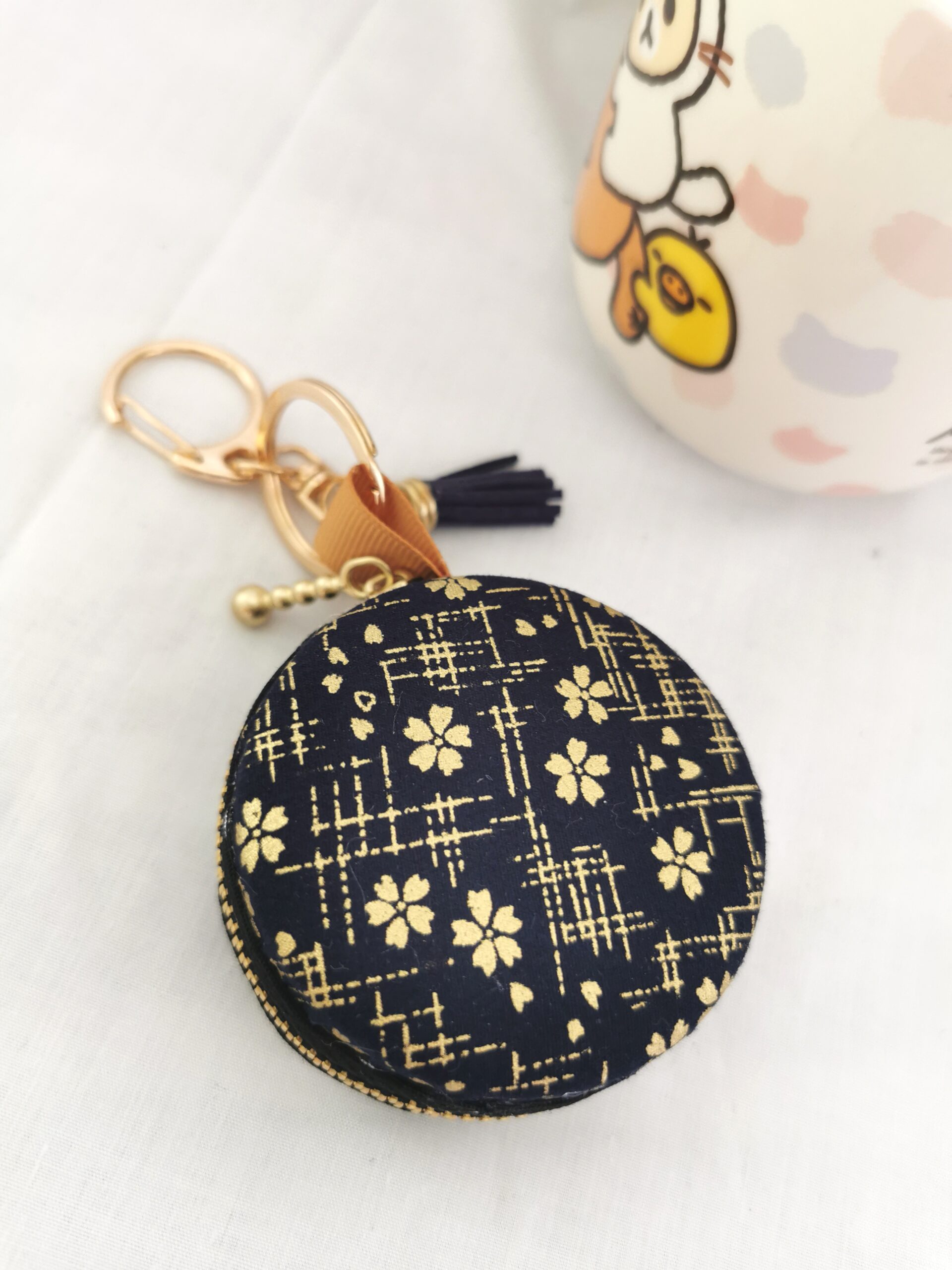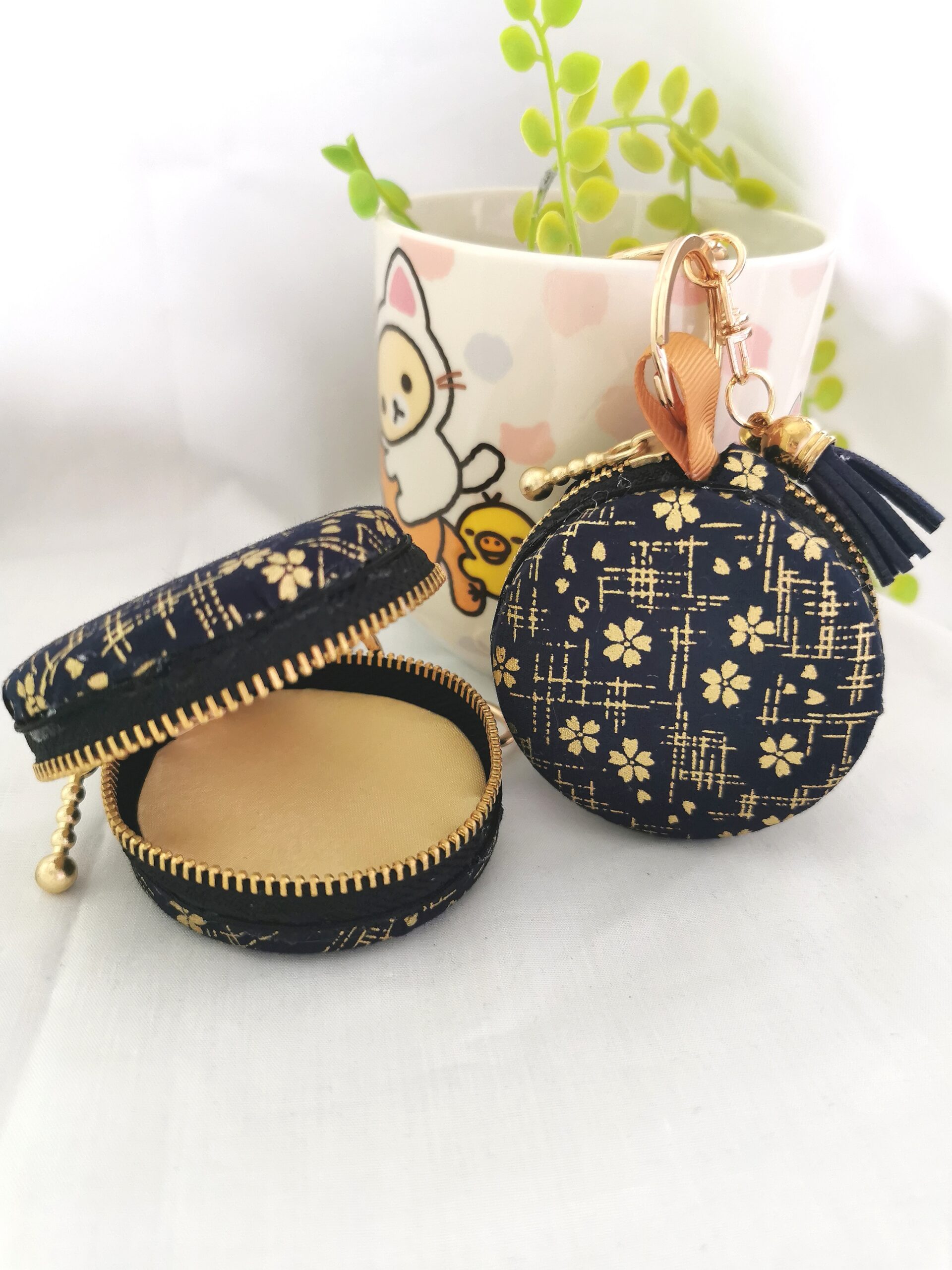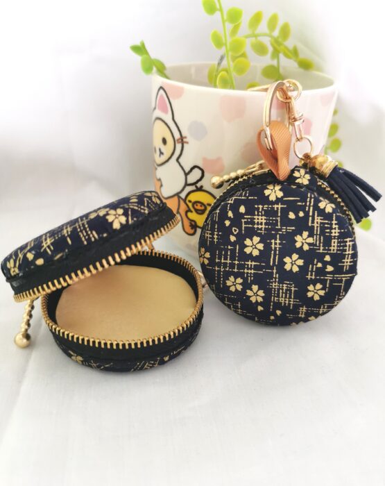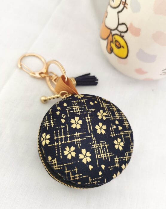 Hand crafted macaron concept pouch / bag charm with zipper for jewelries accessories, coins and earpiece; doubled up as a keychain. Meticulously finished with good quality fabrics of various designs. Every piece is intricately hand sewn to its finest details. Ideal gift for all occasions.