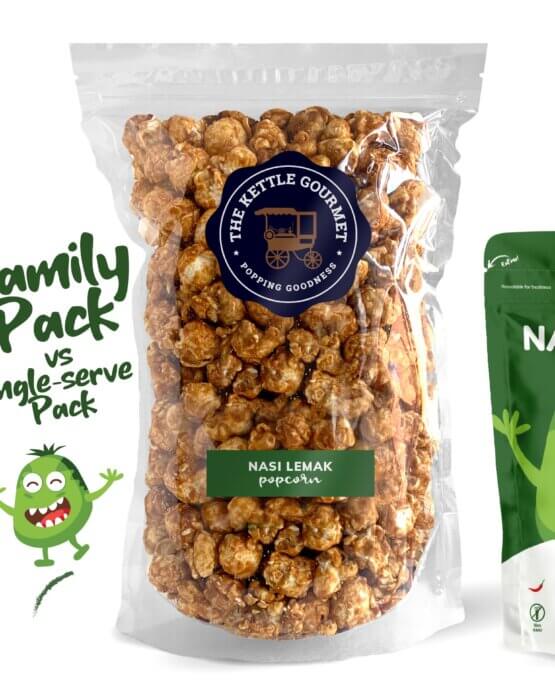 For a party of five or an indulgence of one. Enjoy our Nasi Lemak popcorn any way you want. Having its roots in the Malay cuisine. Nasi Lemak is a creamy, coconut-milk-infused rice dish with an aromatic pandan smell that is traditionally served with fried ikan bilis, peanuts, eggs, cucumber slices, and sambal (spicy chili paste).