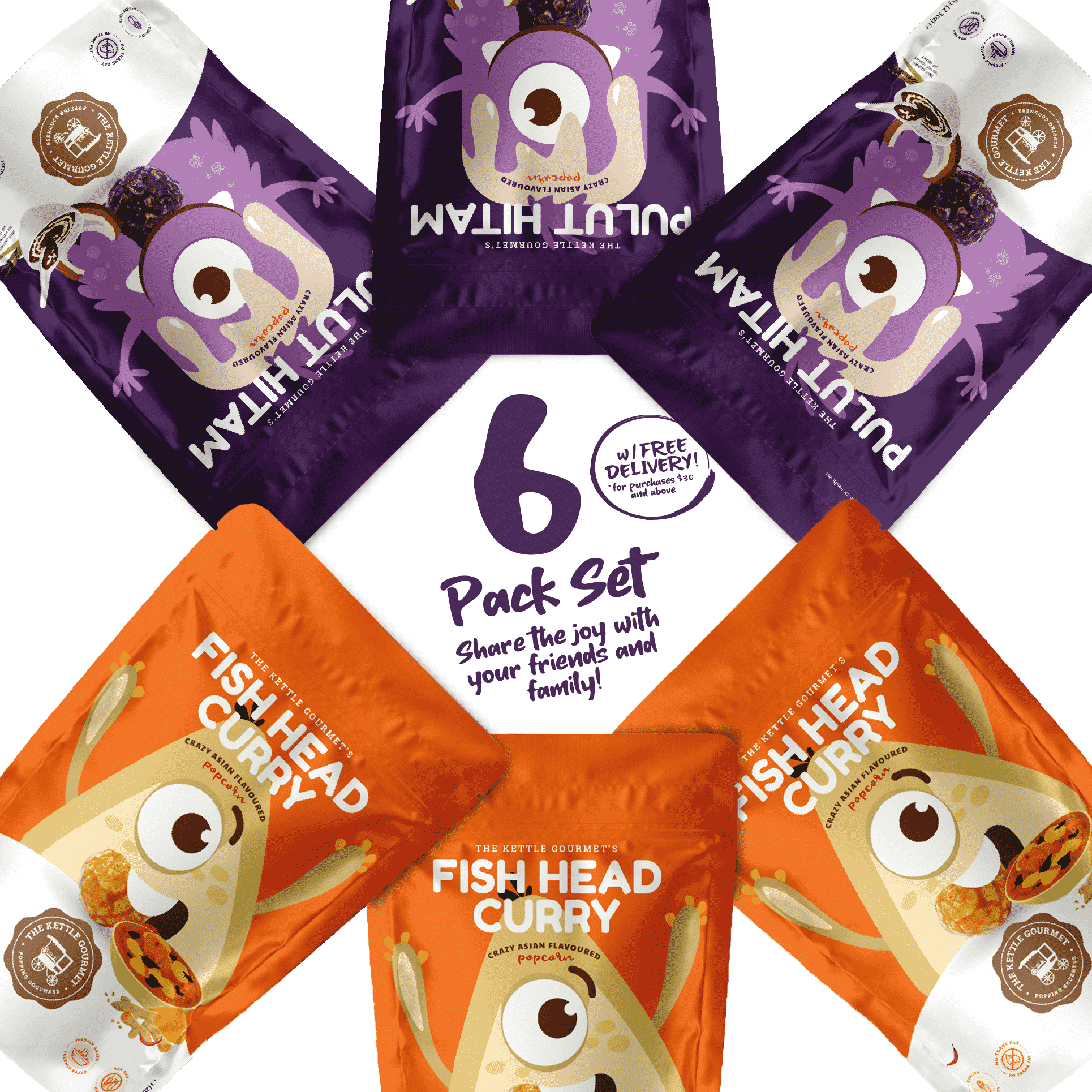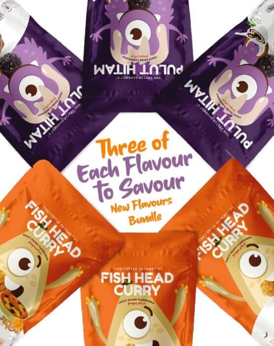 Craving for authentic Asian flavours? We’ve bundled together our Fish Head Curry and Pulut Hitam flavoured popcorn to ensure you get your desires fixed! Enjoy our Sweet and Savoury flavours all in one, with a sense of nostalgia anytime, anywhere!